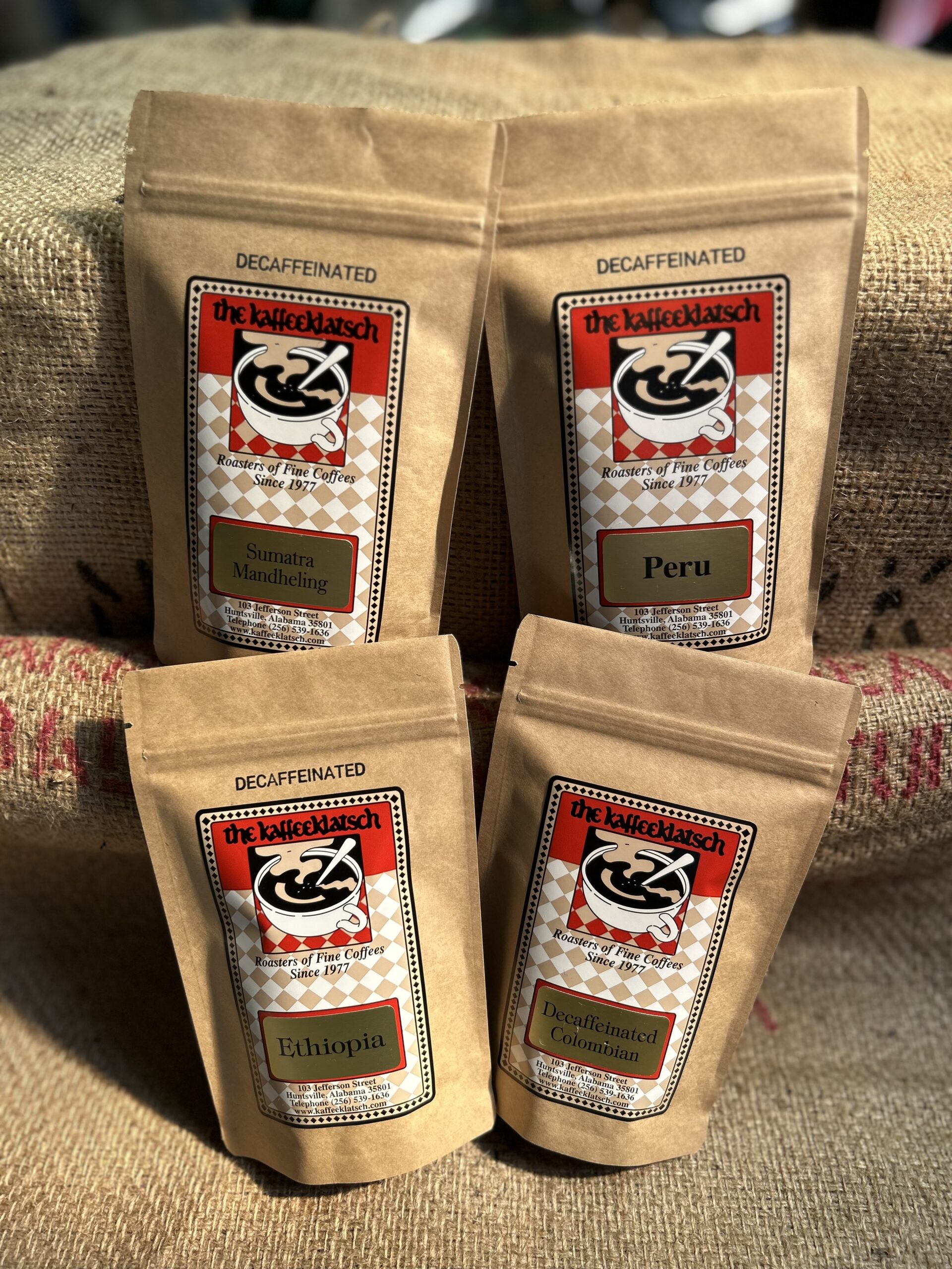 The Sampler includes a 1/4 pound of four decaffeinated coffees: